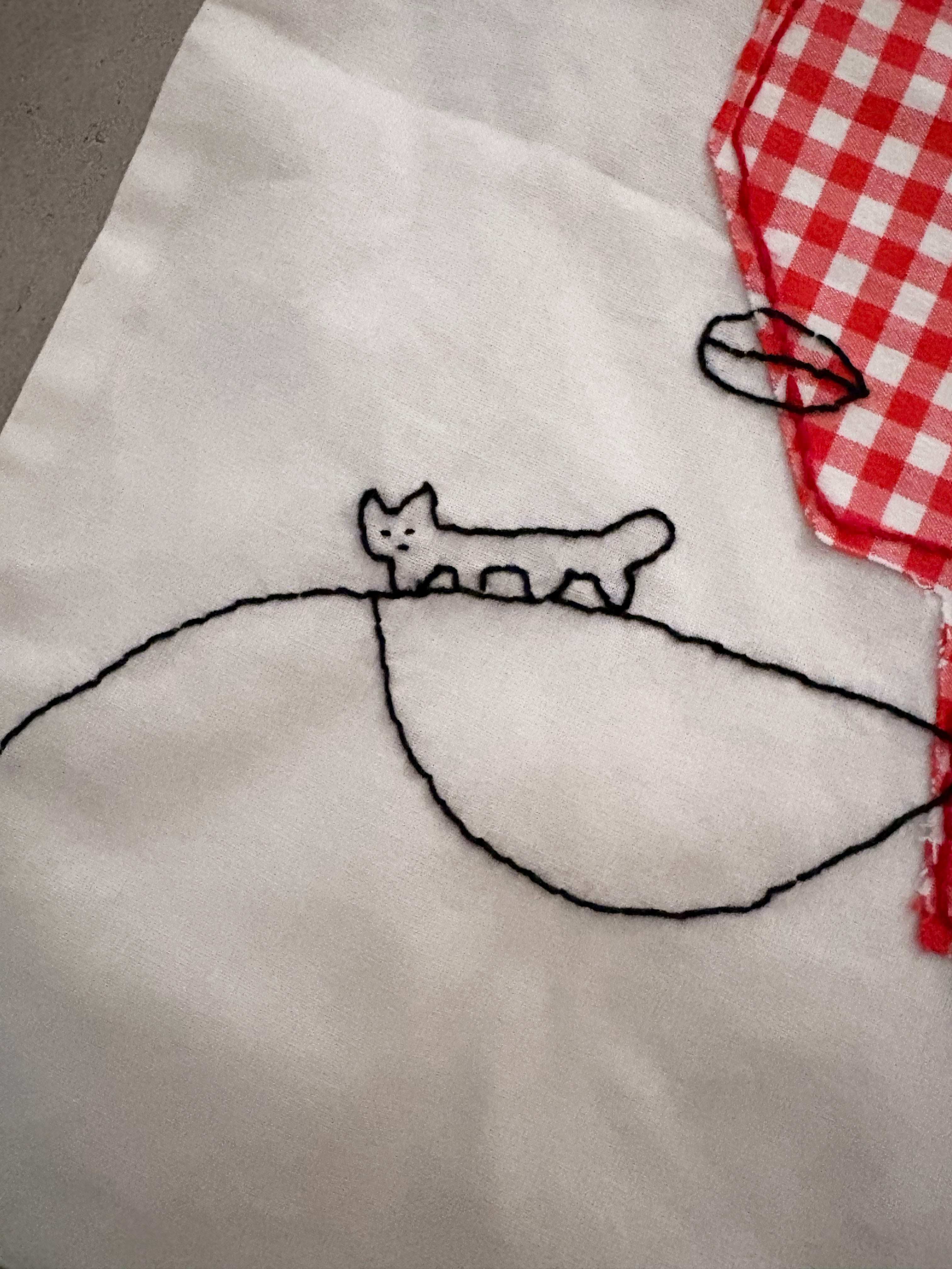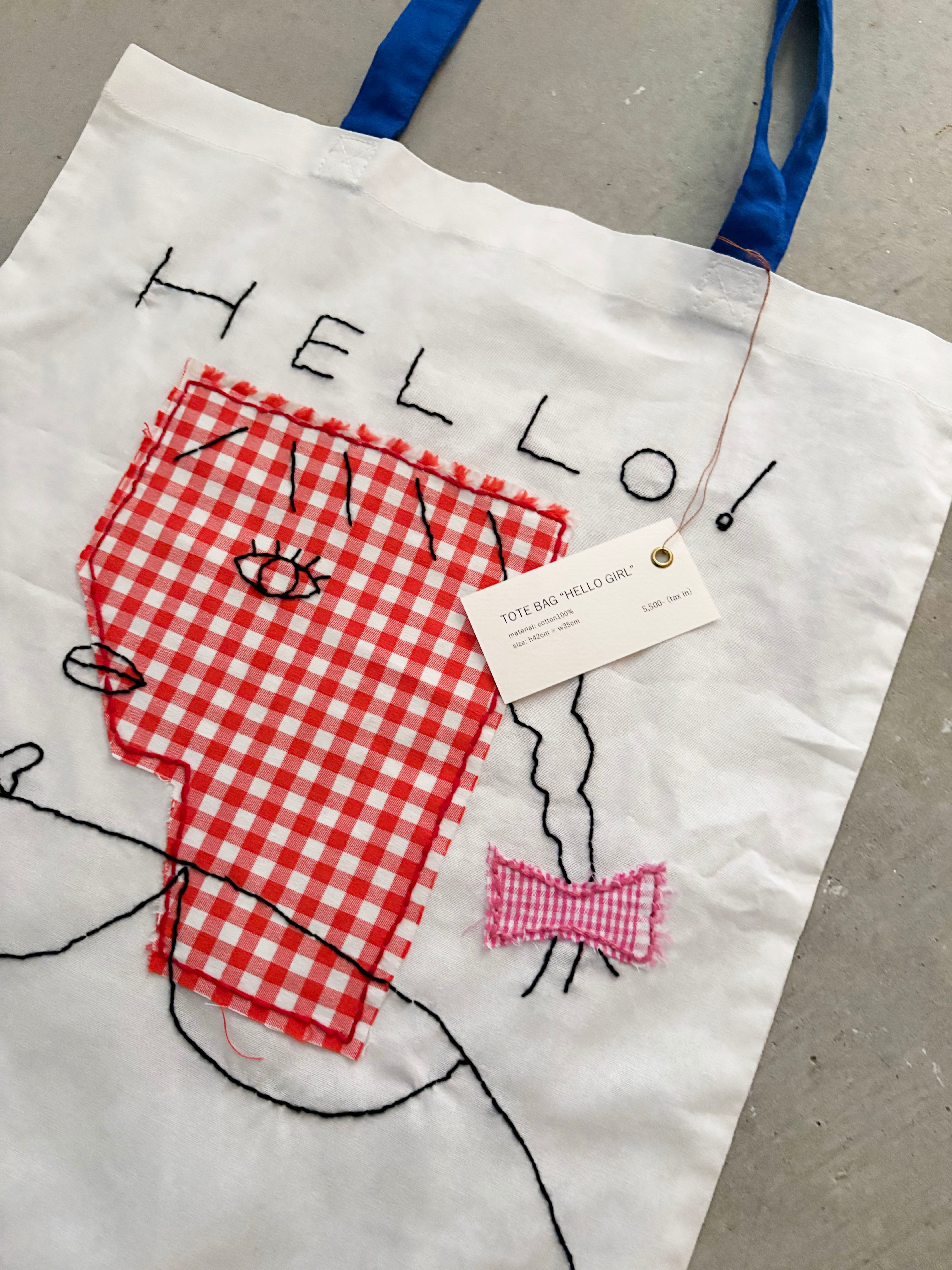 布と糸で女の子の横顔を表現した、トートバッグです。
